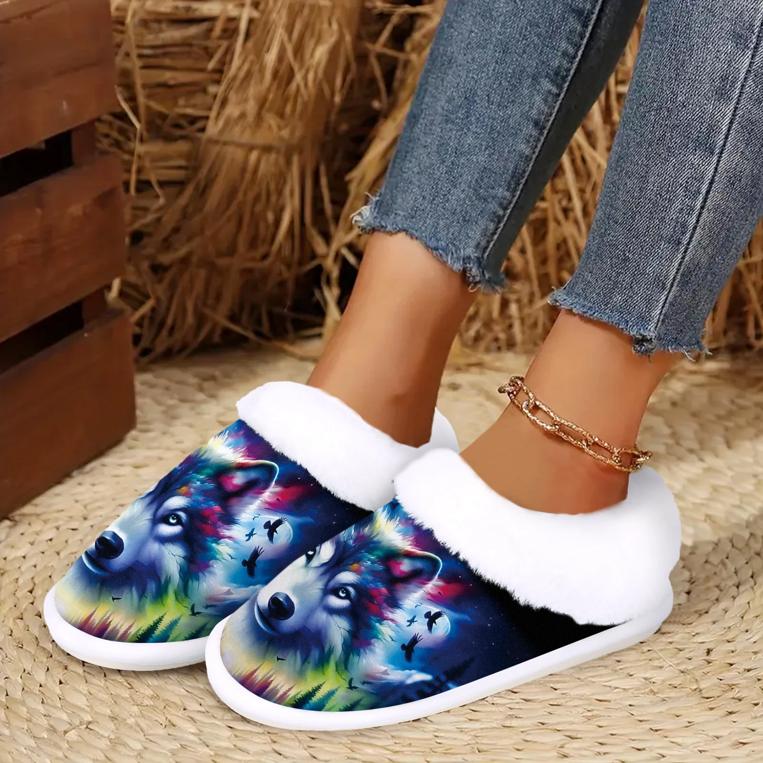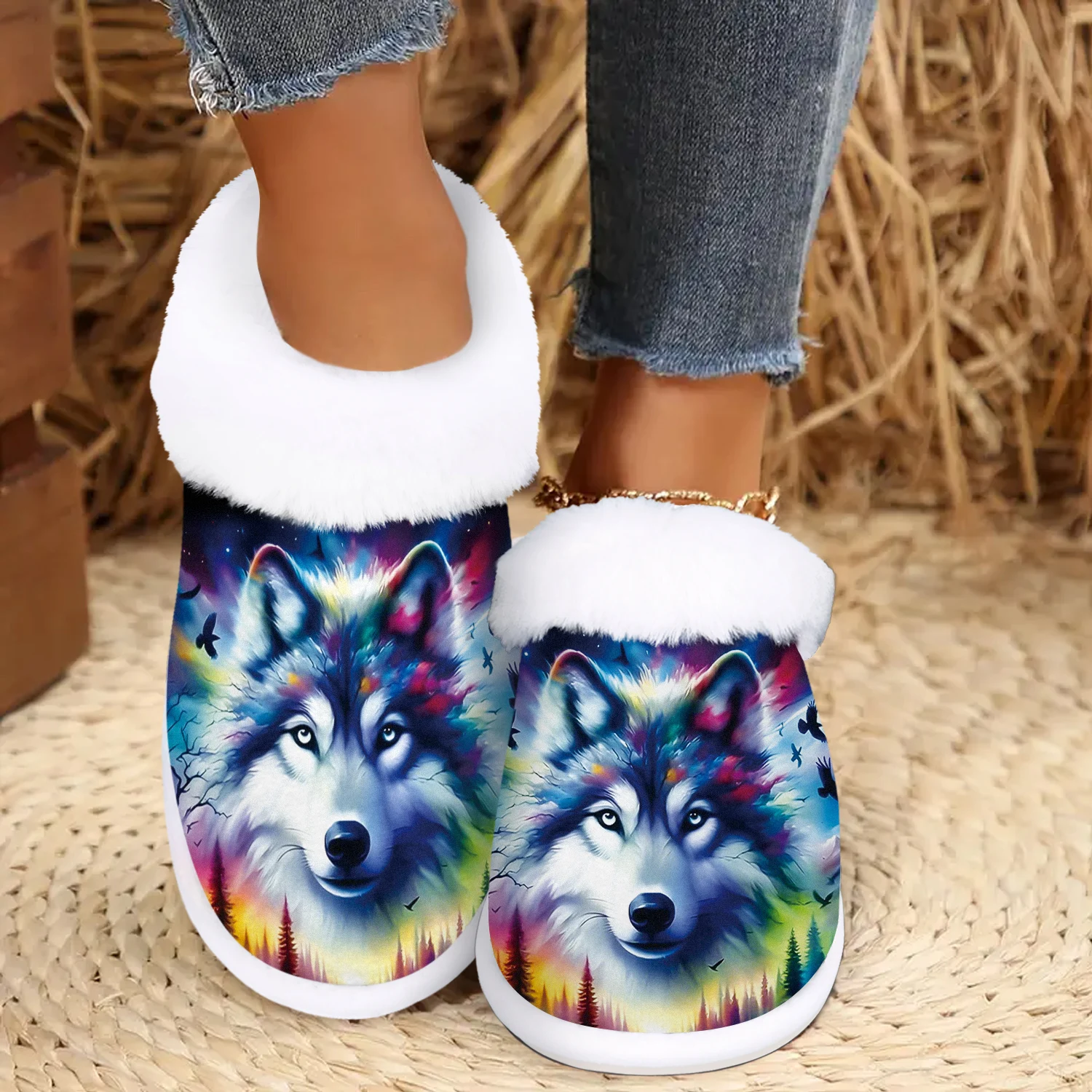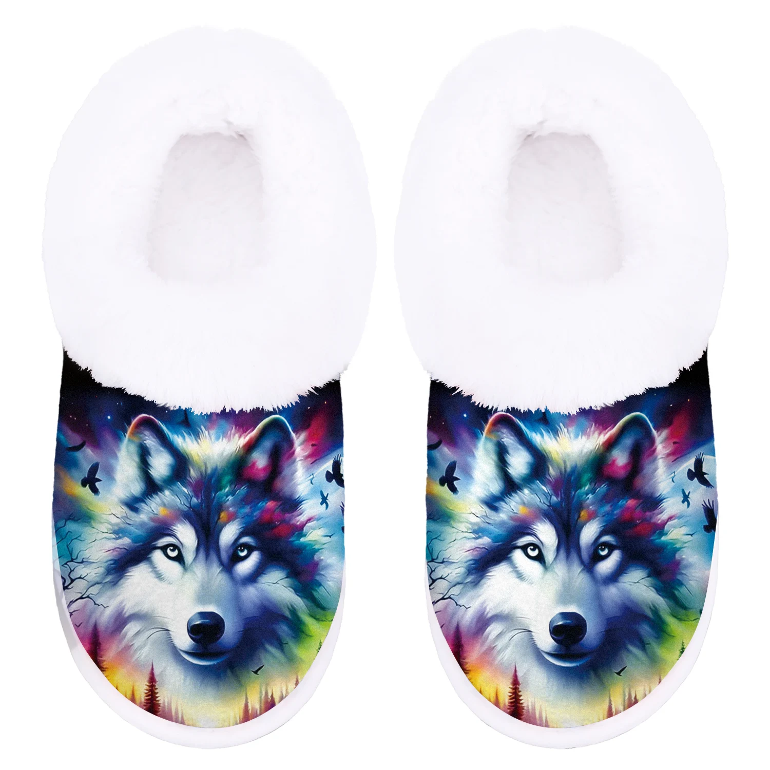Cozy Wolf Slippers - Soft Fuzzy Indoor/Outdoor Winter Warmth with Non-Slip Rubber Sole