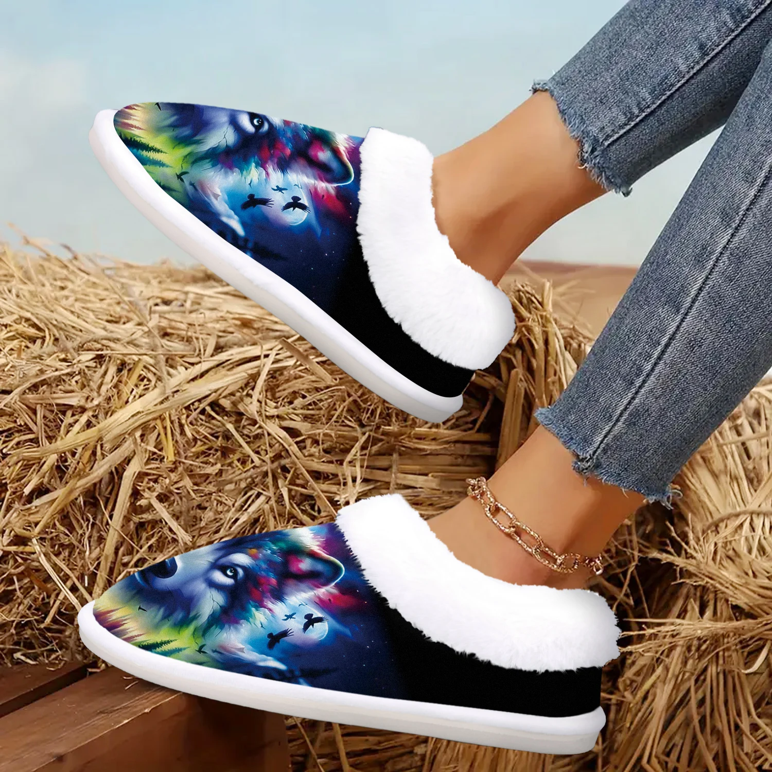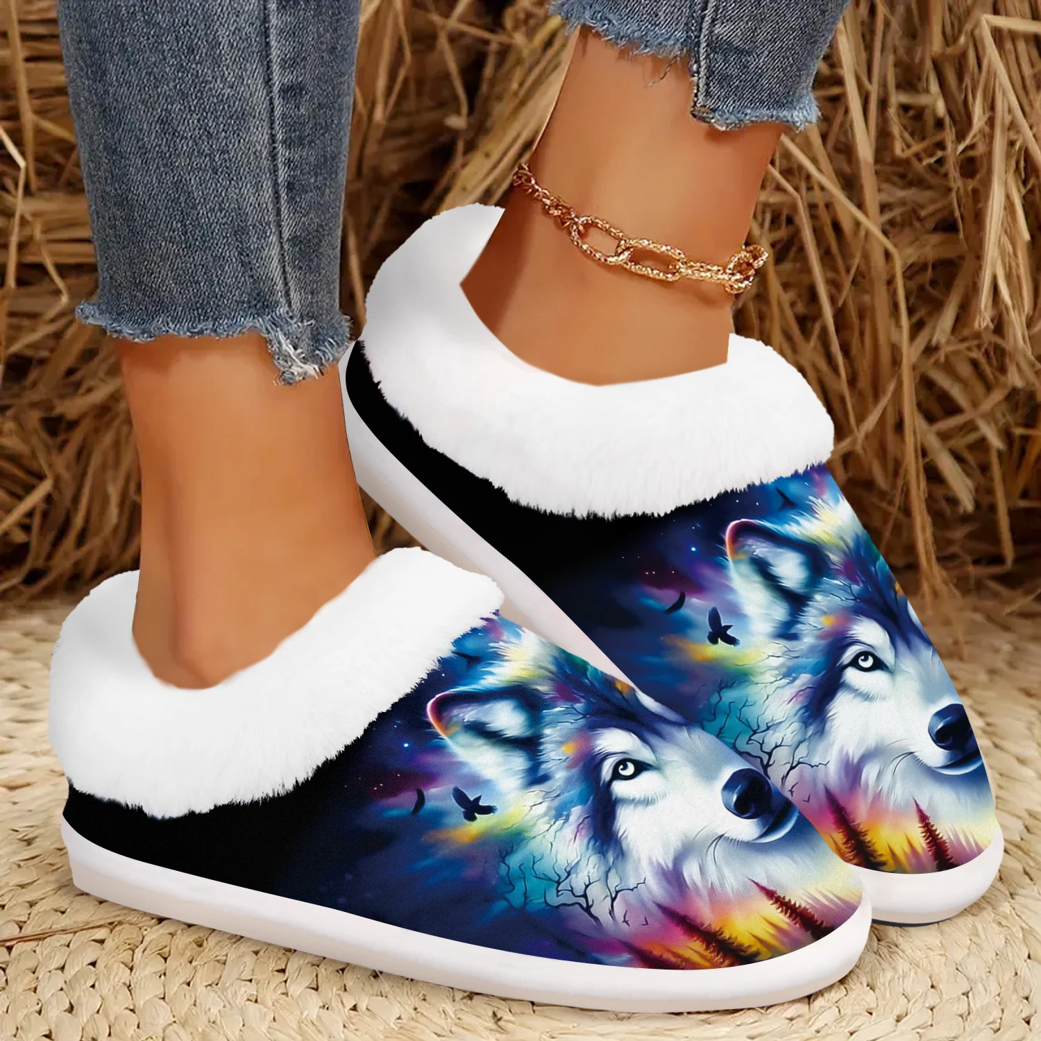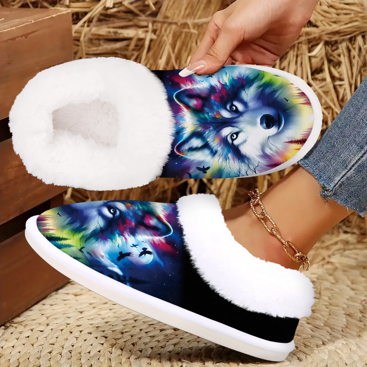 Cozy Wolf Slippers - Soft Fuzzy Indoor/Outdoor Winter Warmth with Non-Slip Rubber Sole