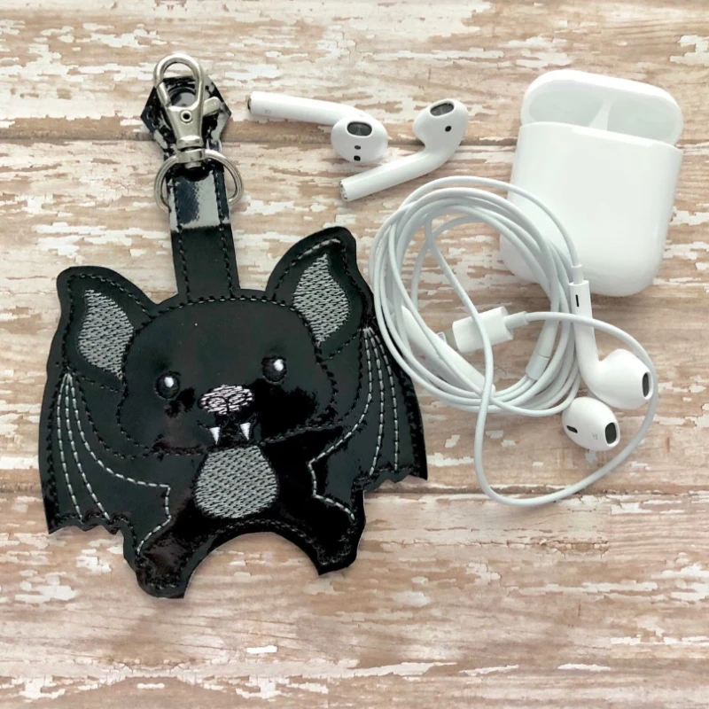 Bat vegan vinyl PU black demon wing air bud case with keychain