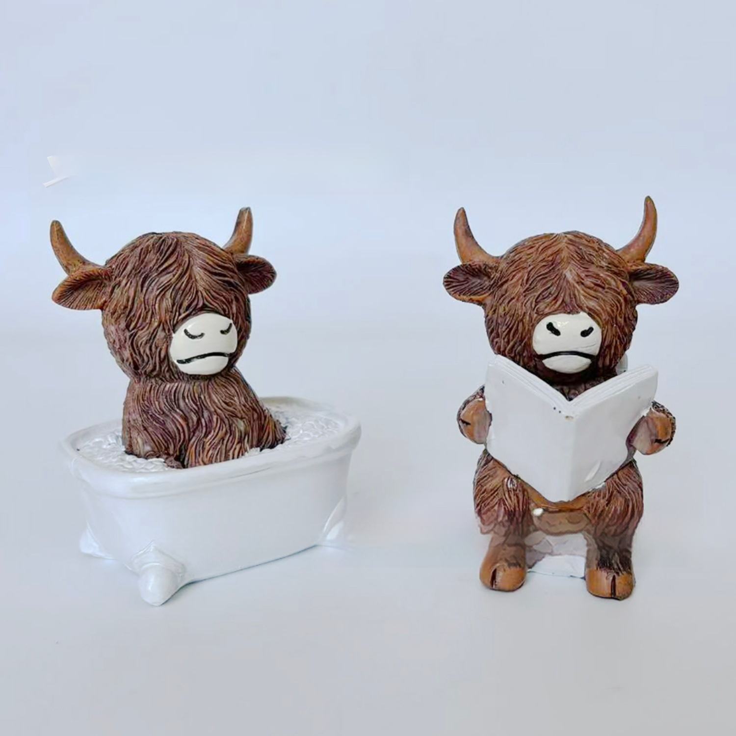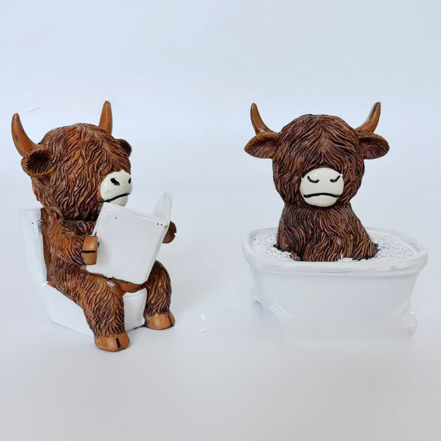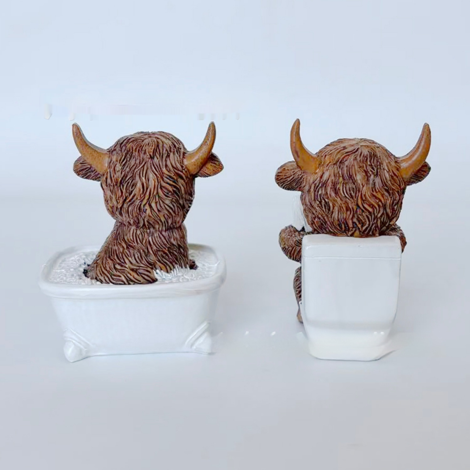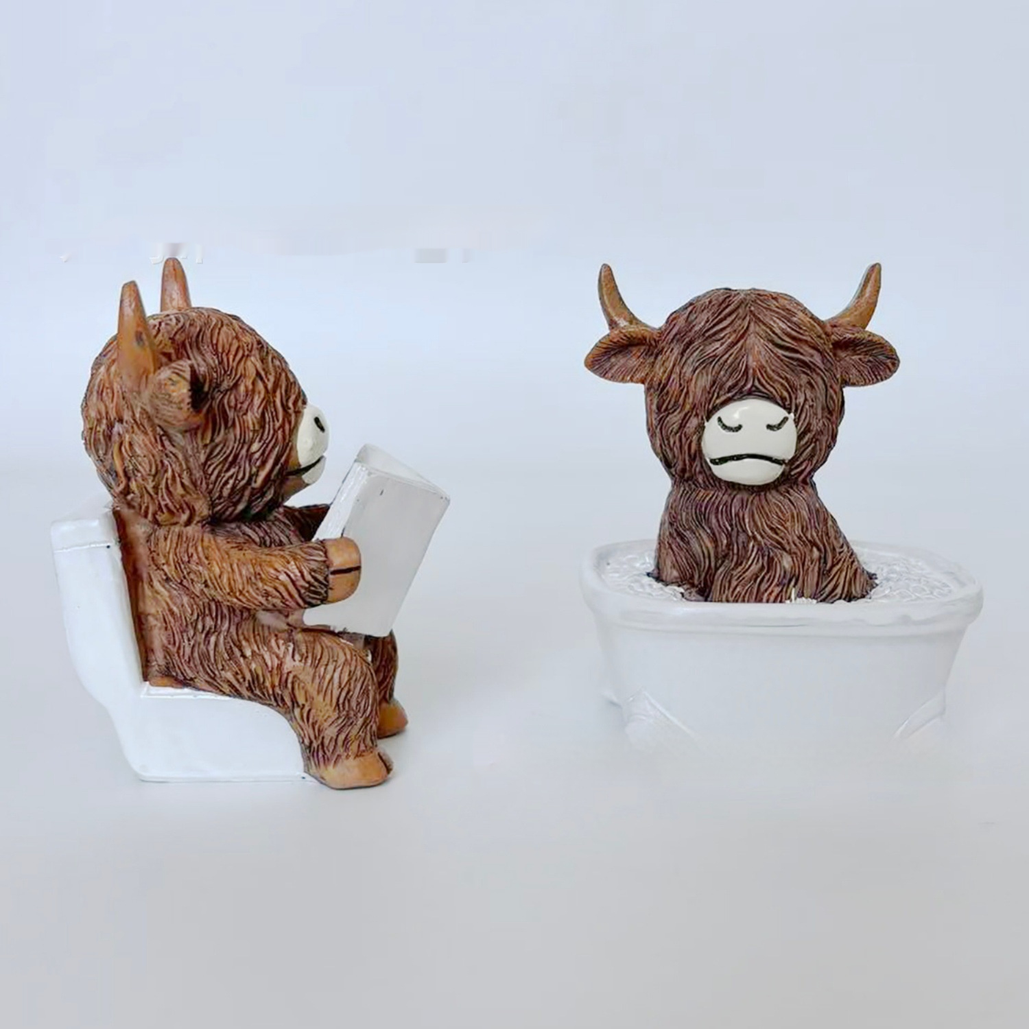 Household Desk Resin Bathroom Toilet Highland Cow Statue Holiday Decorations
