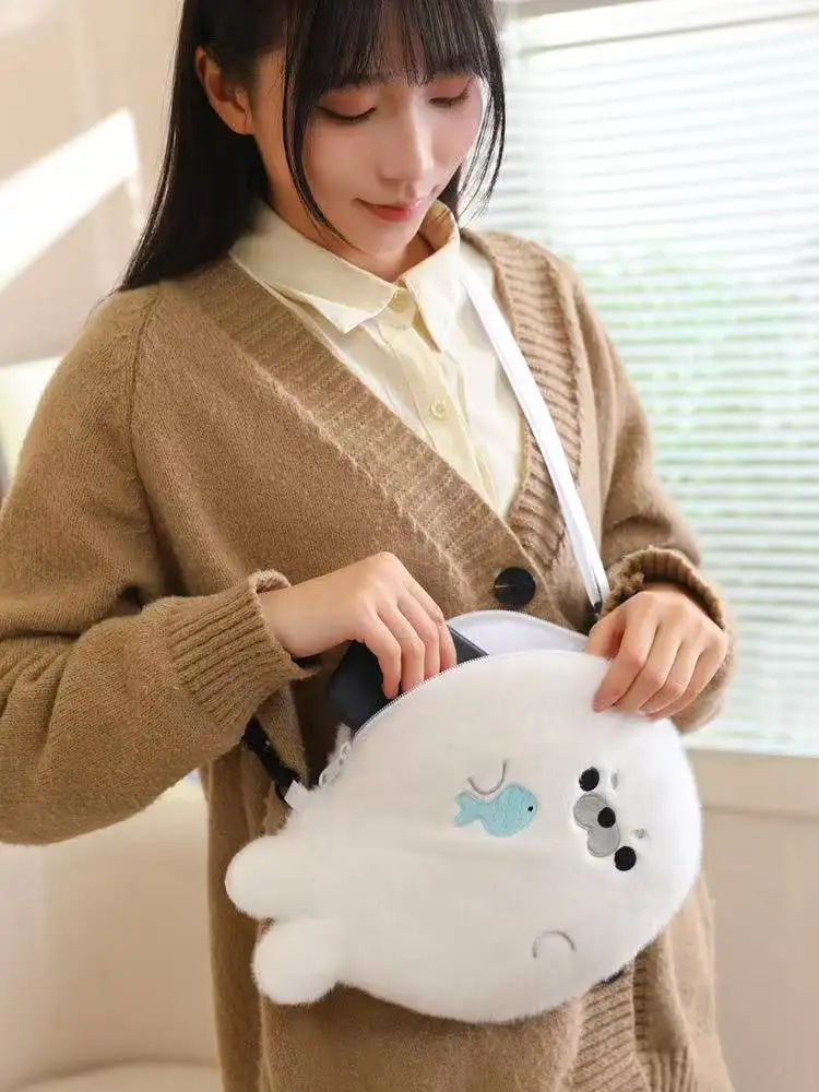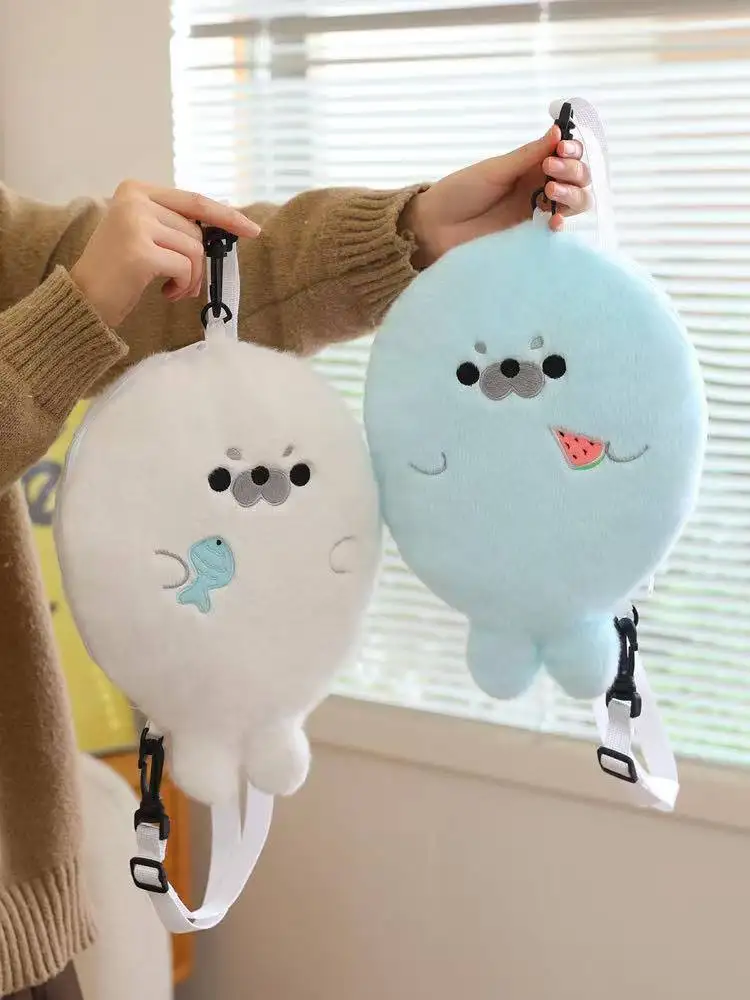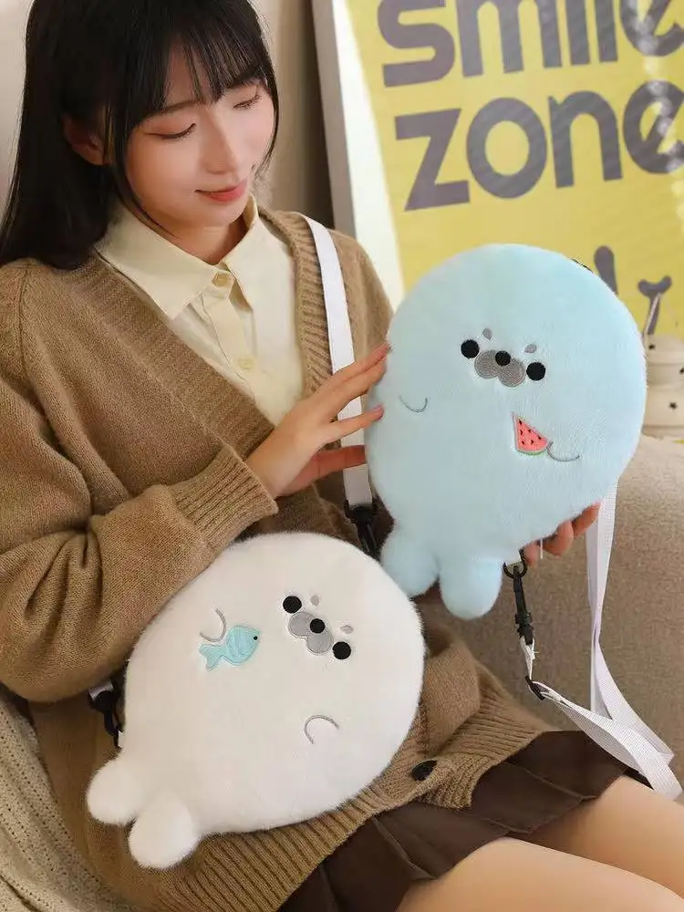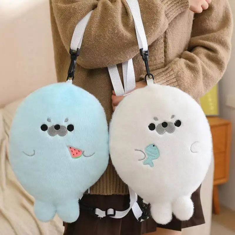 Latest Strawberry Keychain Seal Backpack - Kawaii Plush Toy Handmade Doll Bag