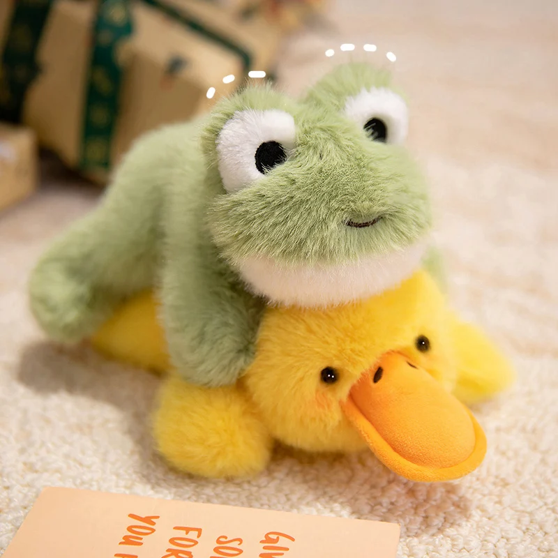 Cute Mini Pets Plush Toys - Fluffy Lie Prone Frog Horse Duck Cow Toys Desktop Decor